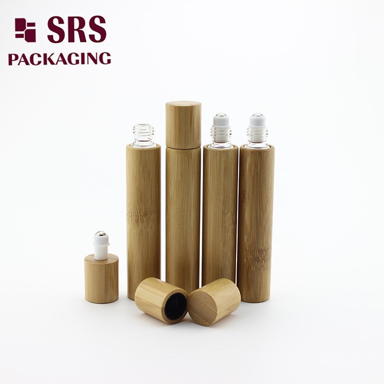 Bouteille roll-on en verre de bambou, la bouteille extérieure est en vrai bambou, la bouteille intérieure est en verre :